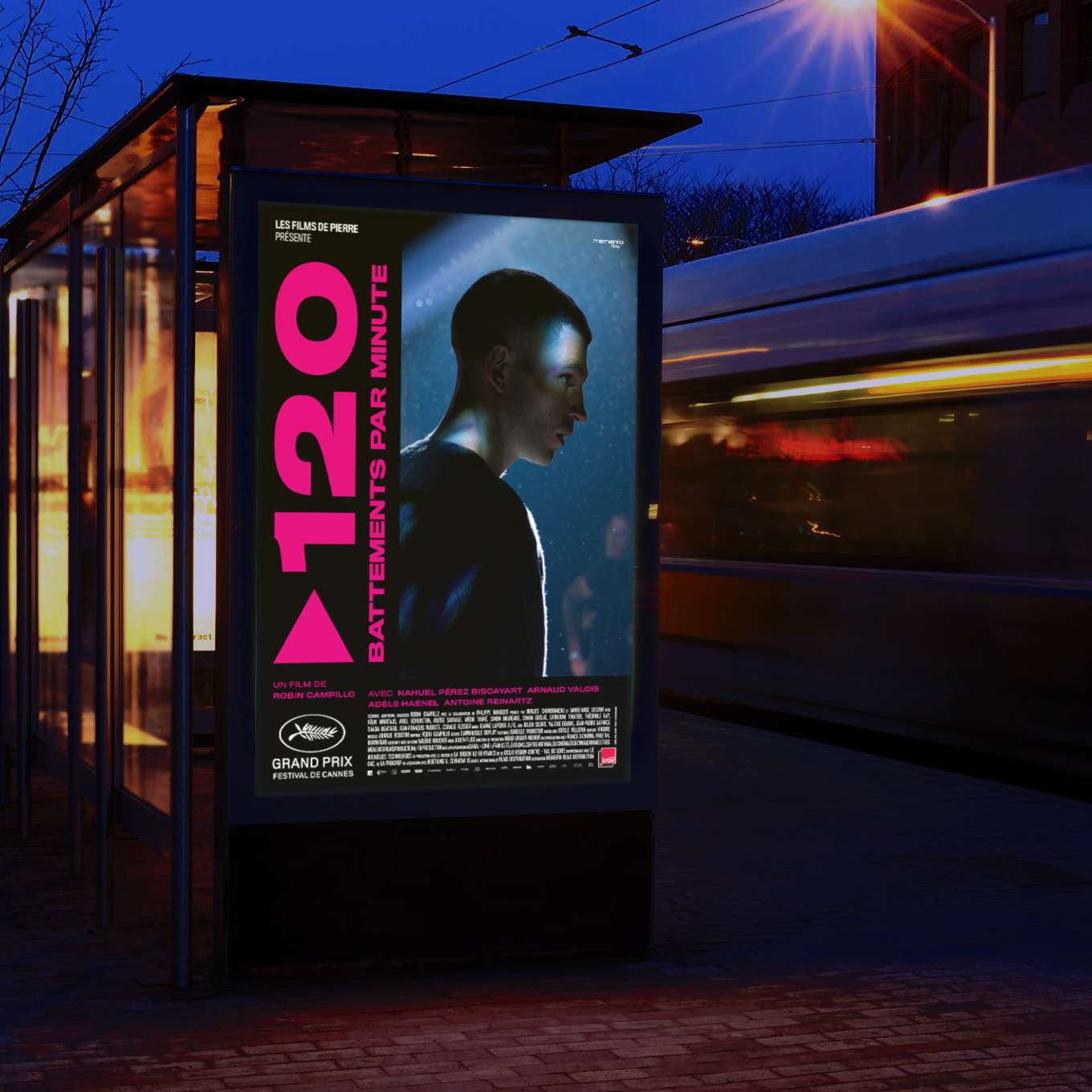 The story focuses on ACT UP PARIS, the very famous French branch from the ACT UP NEW YORK association. All along the film, you can see their posters, tee shirt, actions, but I was seriously disappointed because of the visuals made for the film. What happened to this punchy ACT UP identity? Where it is? They used the pink triangle on the DVD, Blu-ray Disc, and the soundtrack CD, and that's it. No pink triangle anywhere else in the identity.