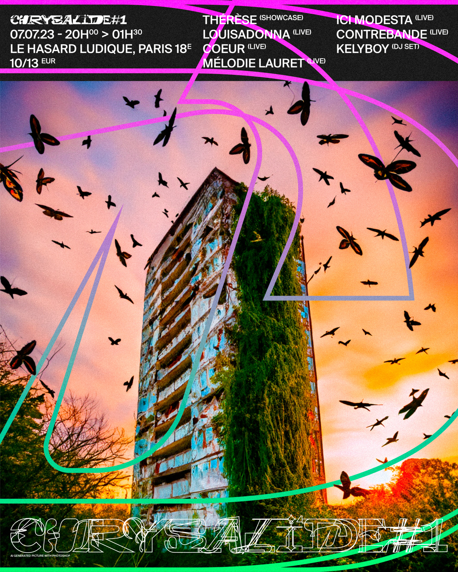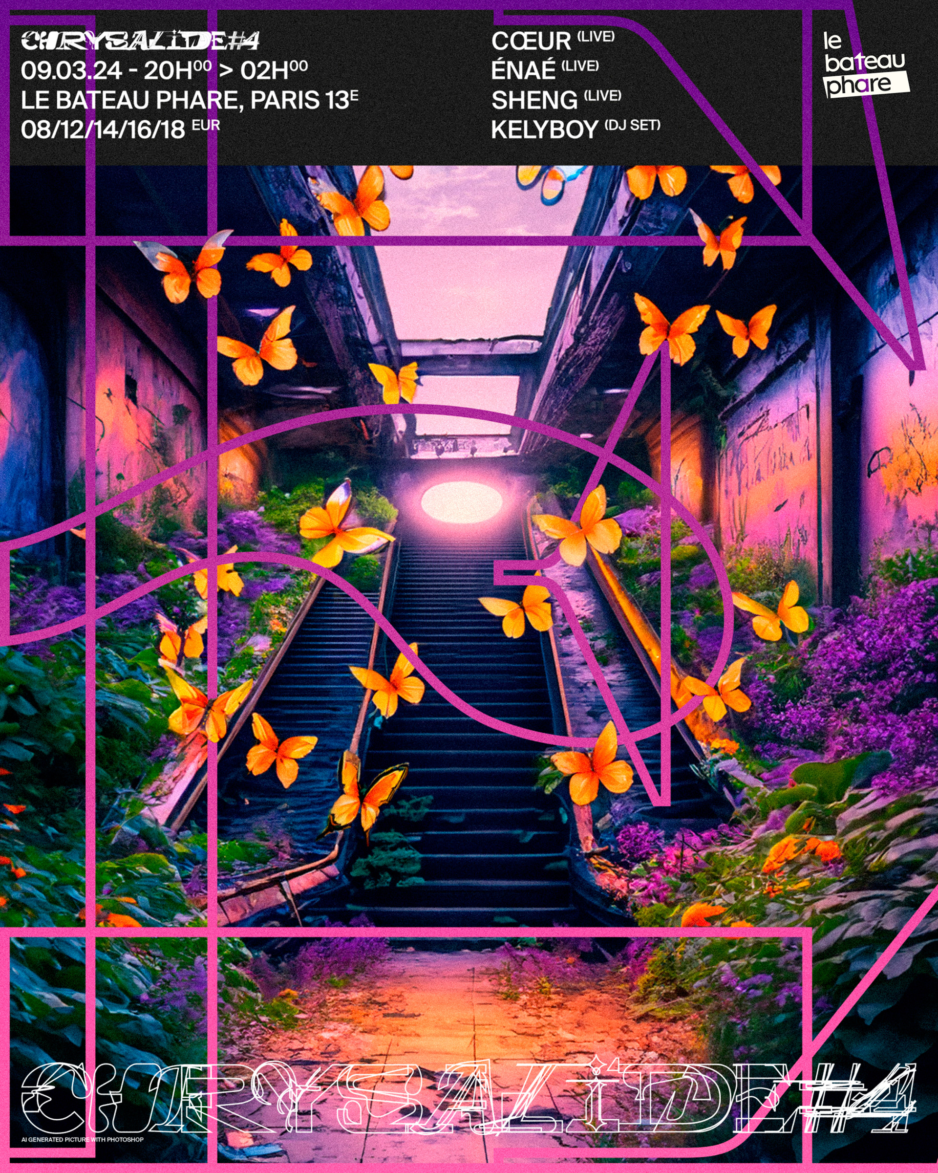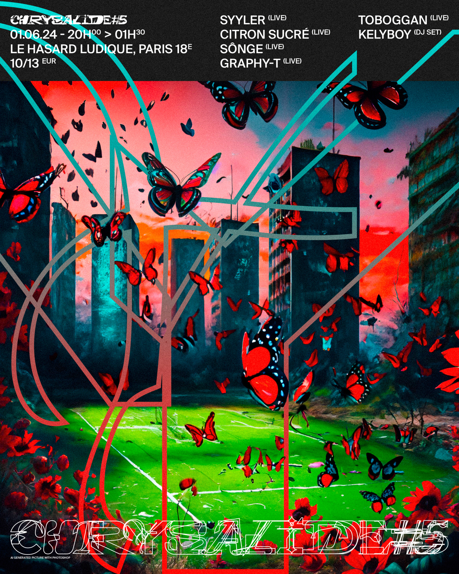 Cinquième visuel de la série, pour la soirée du 01.06.2024 avec @songemusic, @graphy_t._, @syyler, @citronsucresound, @toboggan__ et the one and only MC de la soirée KELYBOY!
