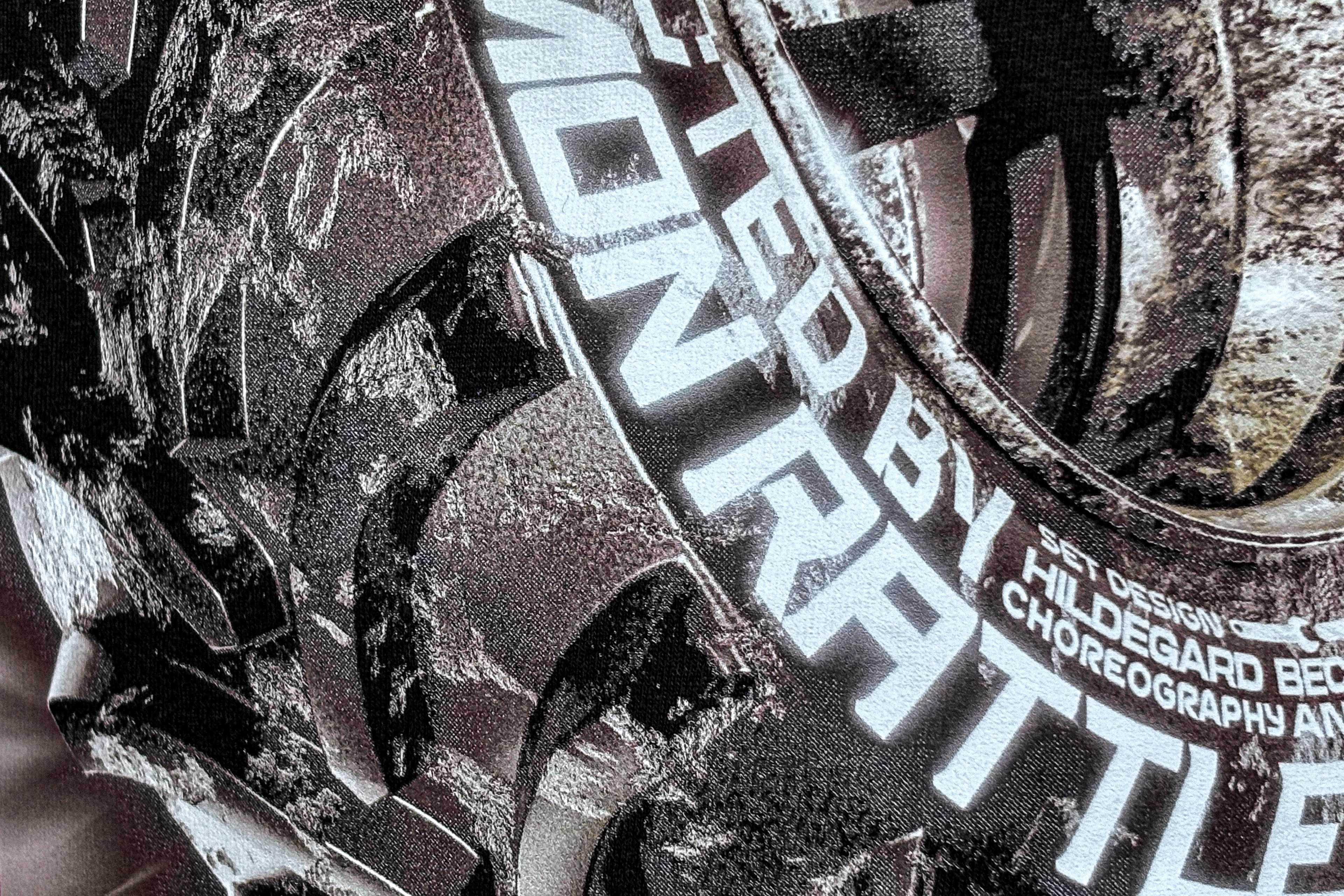 L’univers graphique s’inspire du Monster Truck, revisité en clin d’œil au « Truck », passerelle mobile et pivot de la mise en scène. De là est né un visuel brutal et mécanique, nourri de symboles liés à l’œuvre et sa scénographie.