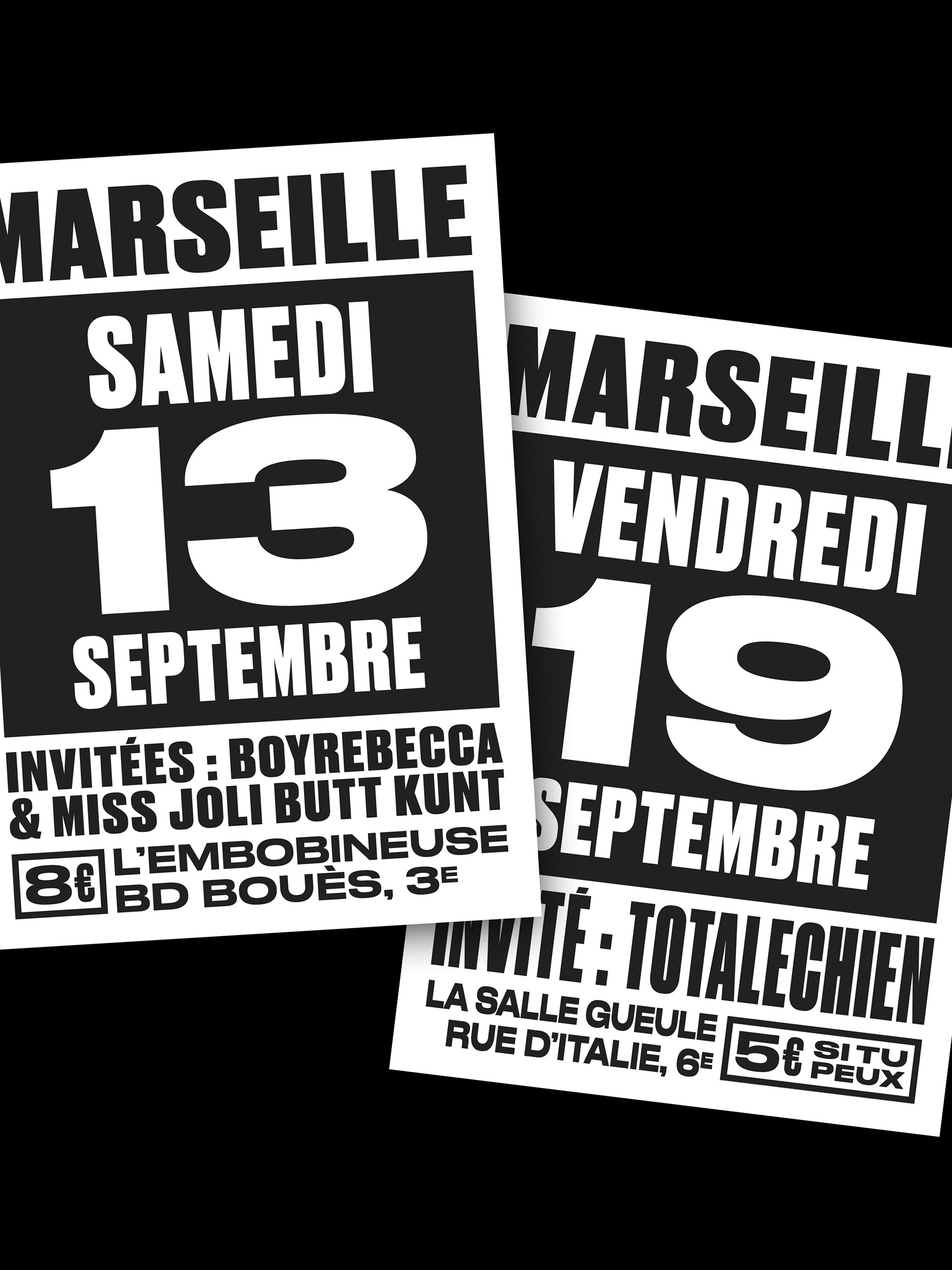 Grande première pour @error.tpg : organiser deux soirées en une semaine, très différentes l’une de l’autre tant par la programmation musicale que par la taille des salles. Ces deux occasions de faire la fête étant importantes pour nous, nous avons voulu relever un vrai défi : créer une communication unique, claire et percutante, sans noyer le public dans une avalanche de visuels pour deux événements si proches.