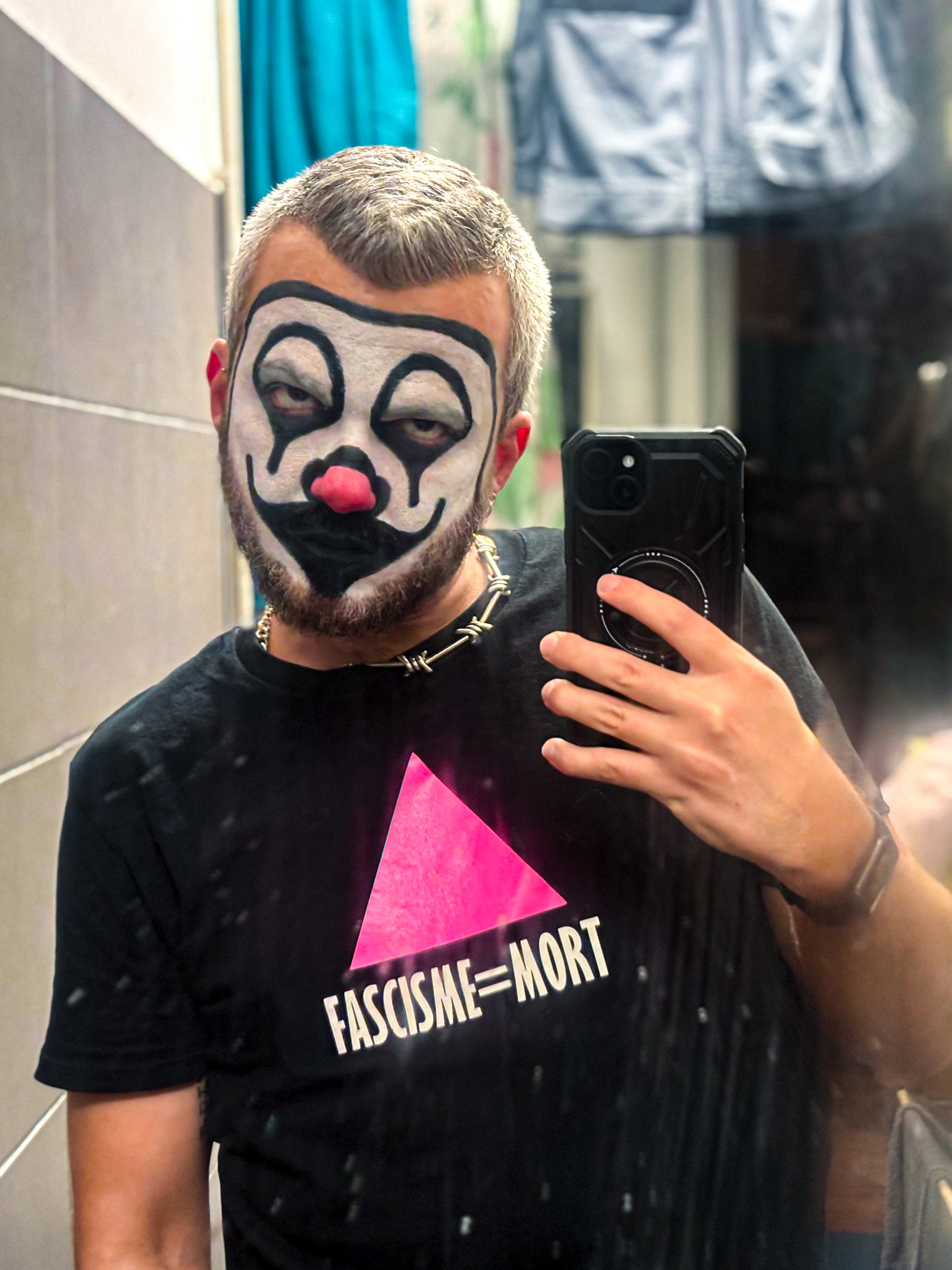 Côté visuels, il était évident de reprendre tous les codes du cirque. Logos métalliques gonflés et brillants, têtes de clowns en très gros plan, cadres étoilés, affichettes de dates en noir et blanc, trames granuleuses… chaque élément devait respirer l’univers du spectacle forain, immédiatement reconnaissable. Cette identité a aussi été déclinée dans le vjing des deux soirées, pour immerger totalement le public.