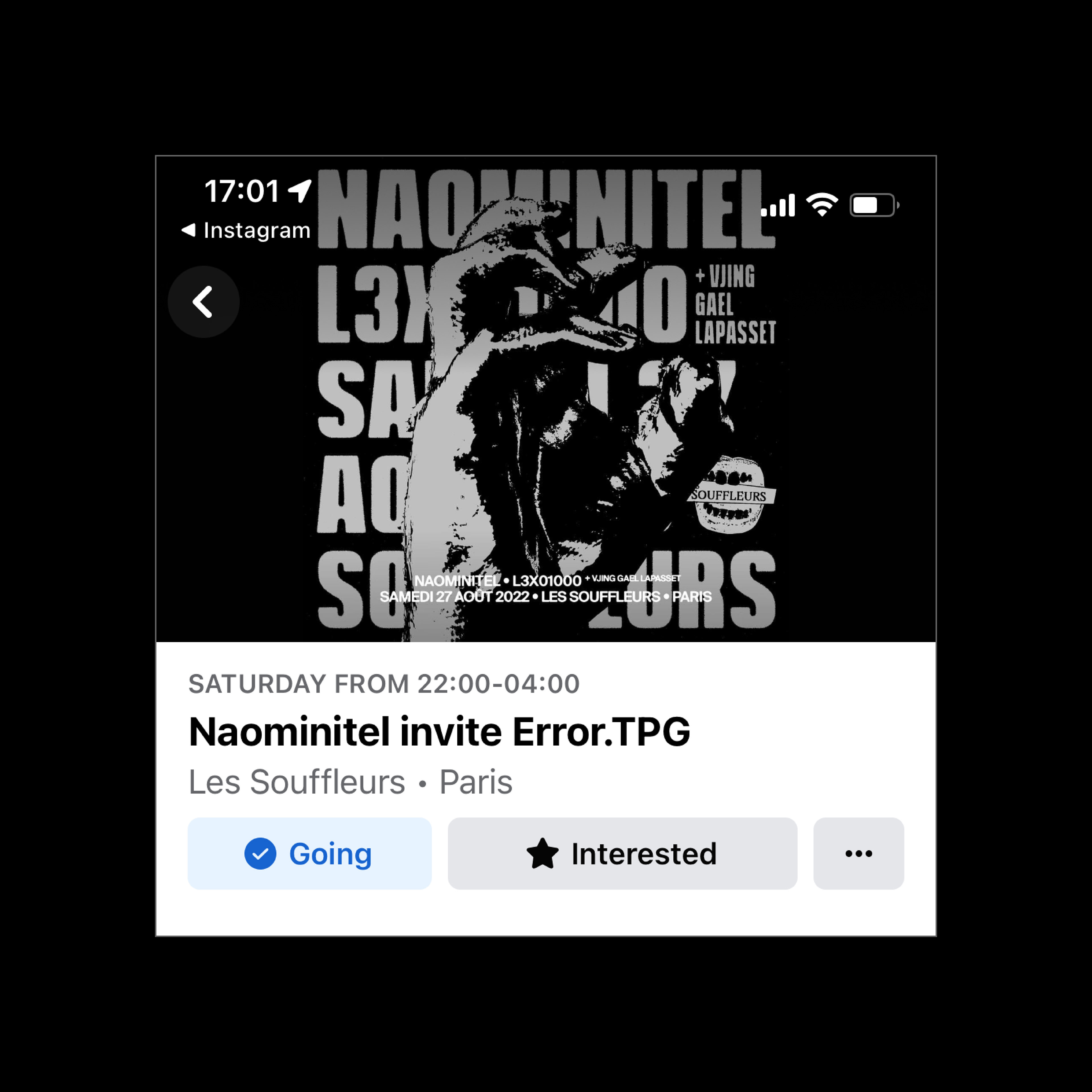 Après avoir dû annuler notre date à la capitale début juillet pour cause de Covid, @naominitel a réinvité mon collectif @error.tpg fin août chez @lessouffleurs_, l'occasion pour les babes @l3x01000 (aka @nick.labaque + @guipol.gpl) et moi-même de montrer nos talents en DJing, VJing et graphisme aux parisien·nes.