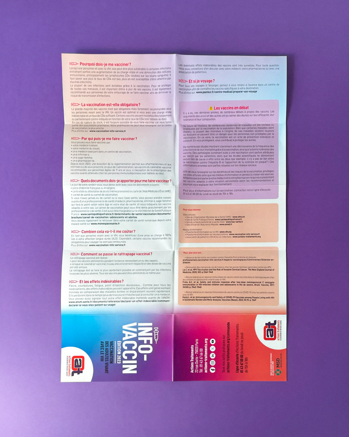 Petit aperçu du dépliant A3 ouvert que j'ai réalisé pour @actions_traitements. Facile à glisser dans une poche, cet outil permet de se tenir à jour sur ses vaccins et de noter les dates des injections, pour ne pas oublier les suivantes!