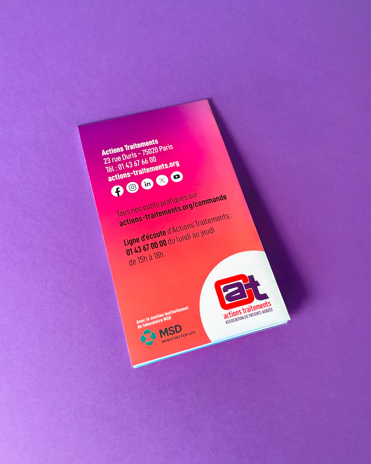 Disponible gratuitement aux formats numérique + print sur leur site si vous souhaitez vous en procurer pour vous-même, vos proches ou les usagèr·e·s ou patient·e·s de votre structure, association, etc. Rendez-vous sur https://actions-traitements.org/commande/