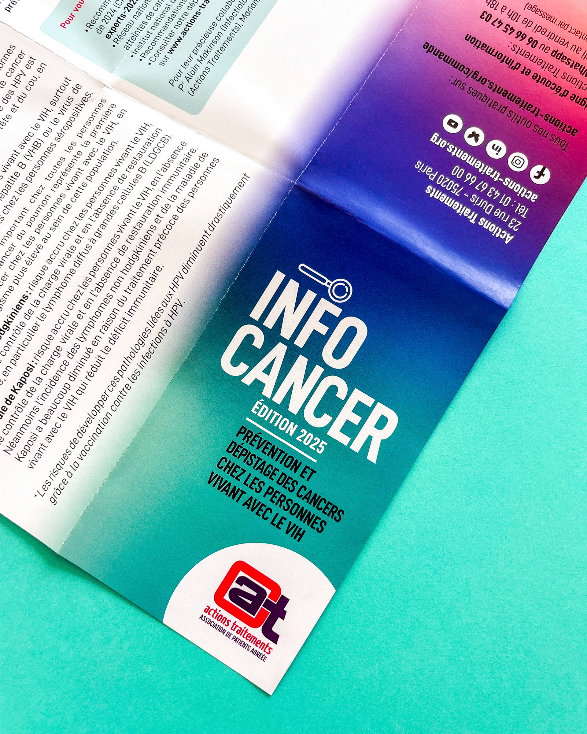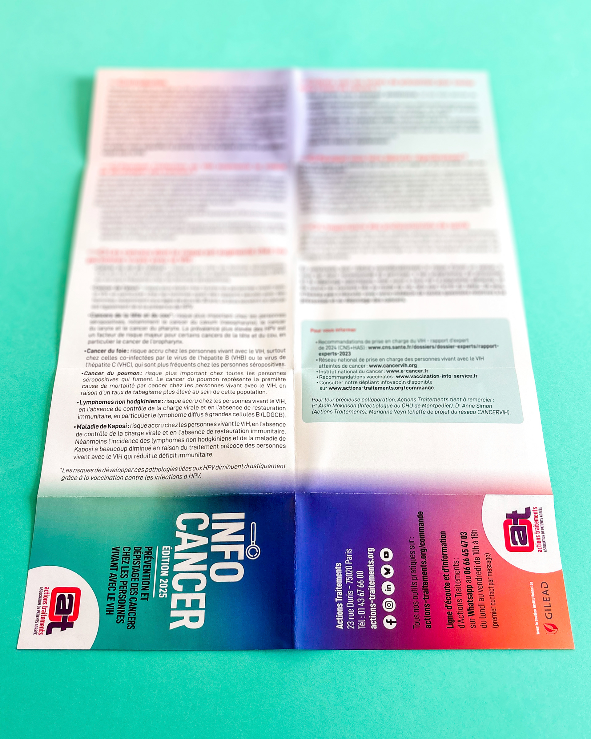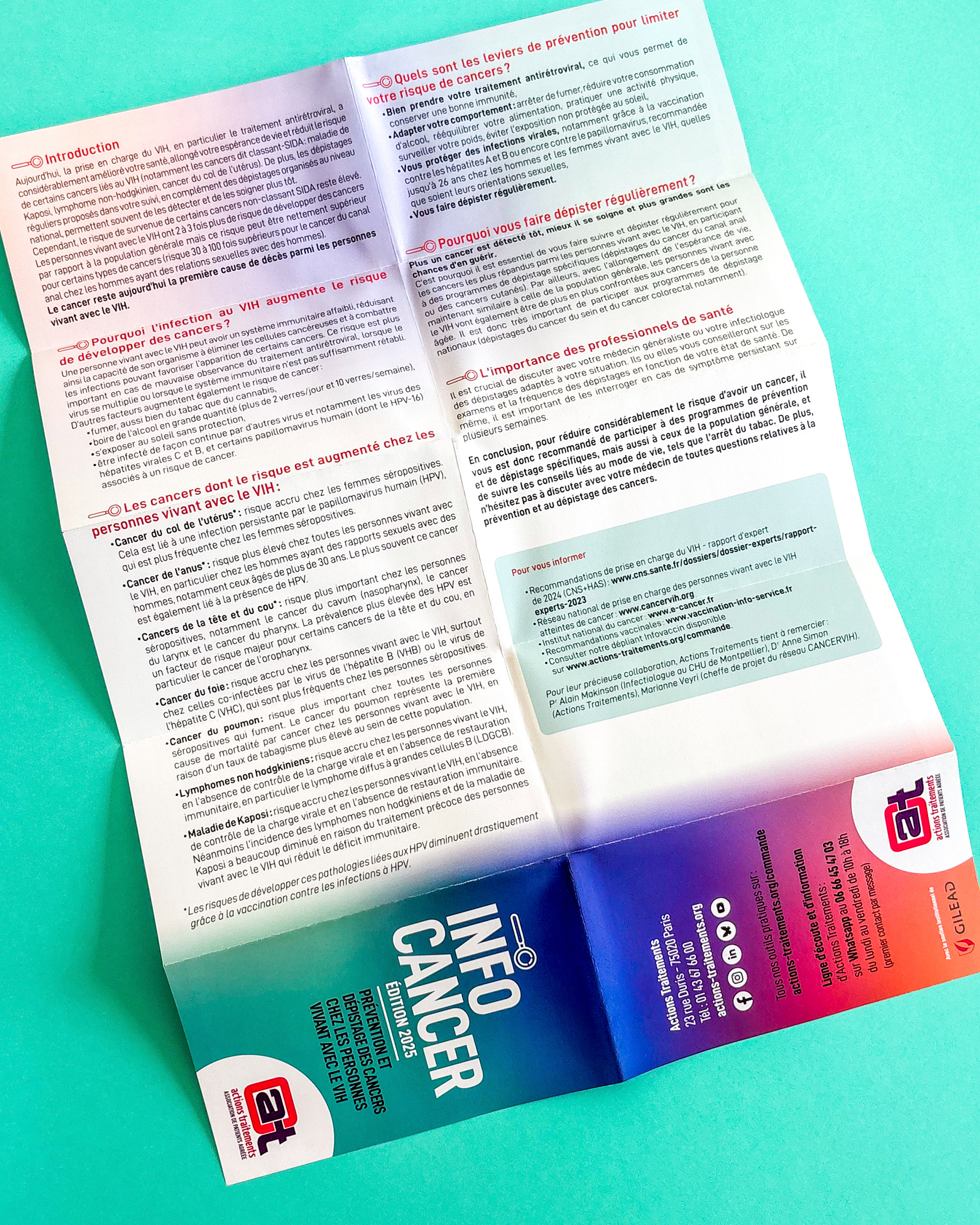 Infocancer : prévention et dépistage chez les personnes vivant avec le VIH, édition 2025 🔎 Aperçu du dépliant format A3 ouvert que j’ai réalisé pour @actions_traitements, dans la même lignée que « Info-vaccin », sorti en 2023.