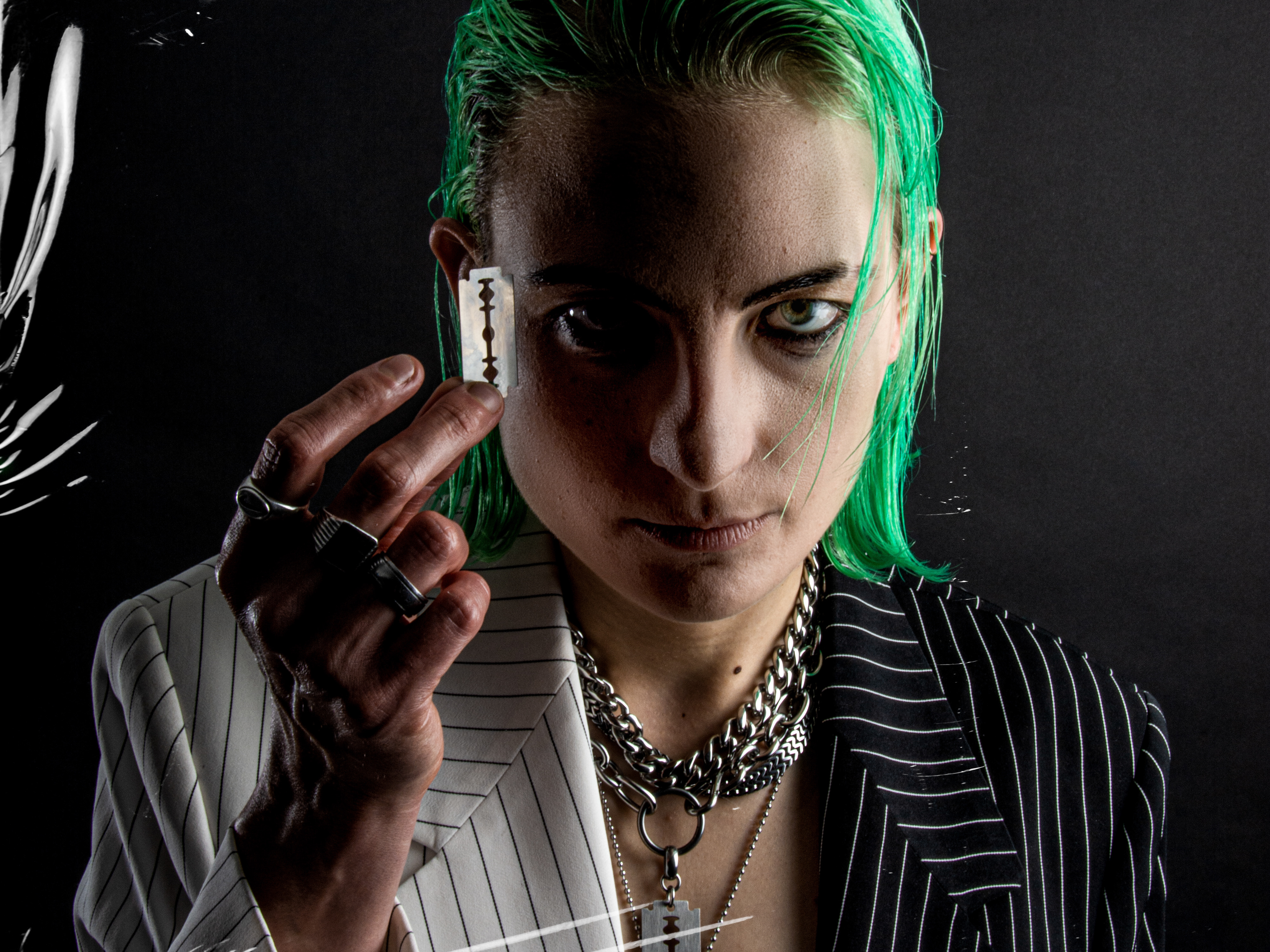 Je suis parti sur un liquide multicolore qui diffracte la lumière et l’enveloppe, comme si sa présence déformait l’espace-temps. Cette matière renvoie autant à la surface de la porte des étoiles dans Stargate qu’’à toutes les textures liquides CGI des années 2000, un univers qui colle parfaitement à ce que nous avons développé ensemble jusqu’ici. J’en ai aussi profité pour retravailler son logo en 3D spécialement pour l’occasion — et pour les visuels à venir (no spoil !).
