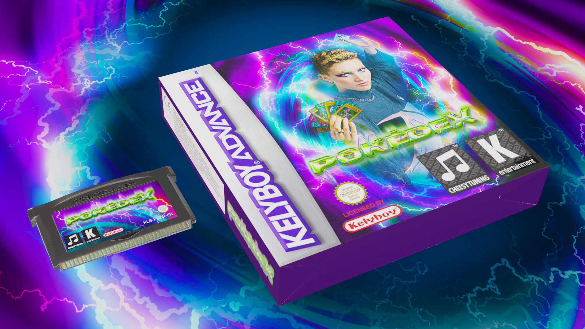 💿 ⚡ 🕹 🃏 KELYBOY - POKÉDEX // J’ai eu le plaisir de bosser avec @kelyboy_music sur les visuels de son album! Nous avons mis une fois de plus en commun nos univers et j’ai eu l’opportunité de faire ce que j’aime le plus: un visuel inspiré d’un packaging de jeu, du détournement de logos, le tout avec des couleurs acides, des éclairs partout et une référence à la franchise Pokémon, ma série de jeux favorite. Que demander de plus? Je suis vraiment ravi du résultat, et je suis allé un peu plus loin en matérialisant l’idée de base en 3D, grâce à des super modèles de thegraphicsgeek et rennau sur @sketchfab. Allez voir leur travail et allez écouter l’album de Kelyboy, dispo partout! 💿 ⚡ 🕹 🃏