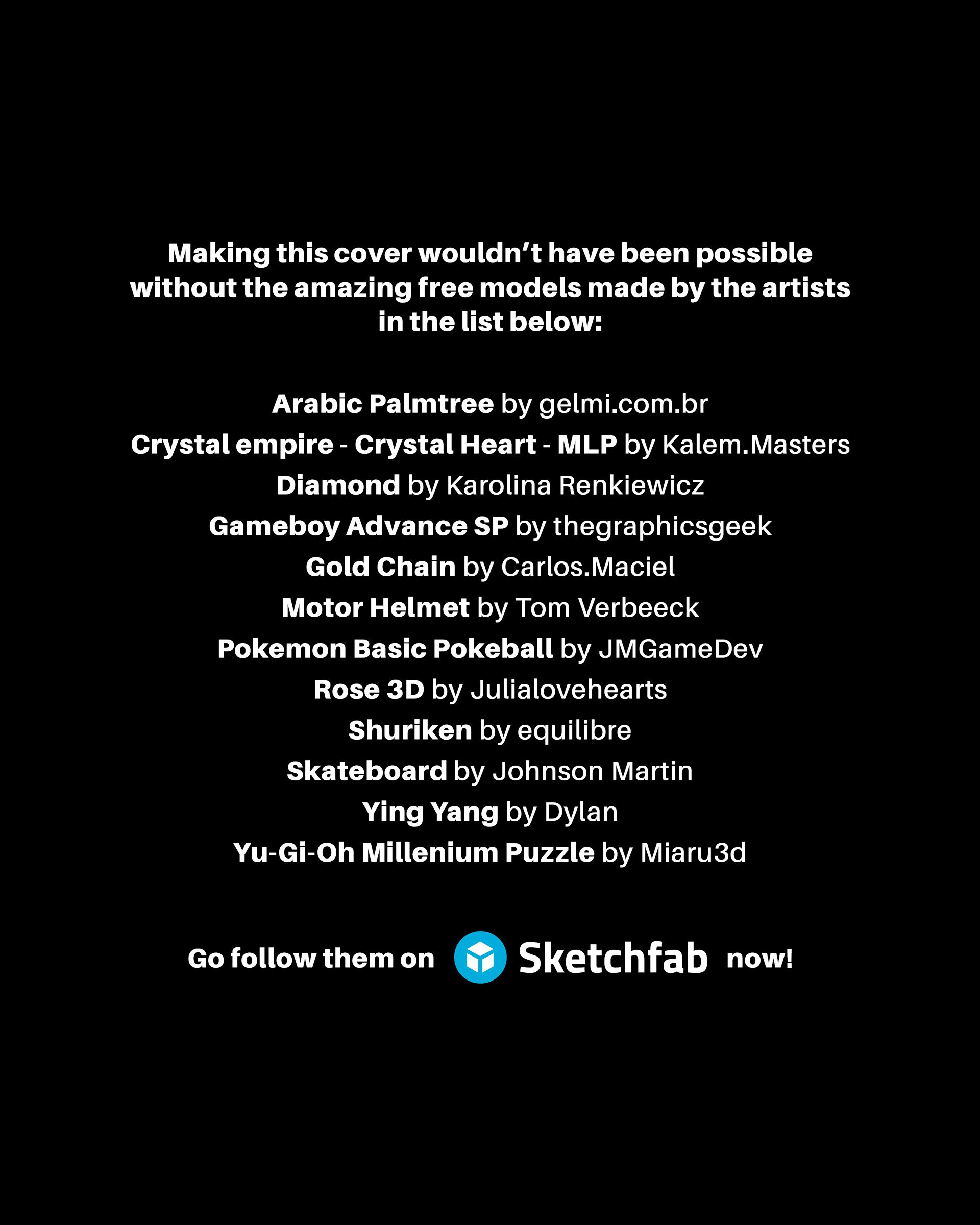 La réalisation de cette pochette n’aurait pas été possible sans les créateur·ice·s de modèles 3D gratuits, que je remercie en fin de post ! Explorez leurs profils et soutenez leur travail sur @sketchfab 🌐💖