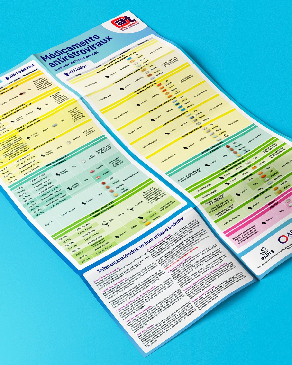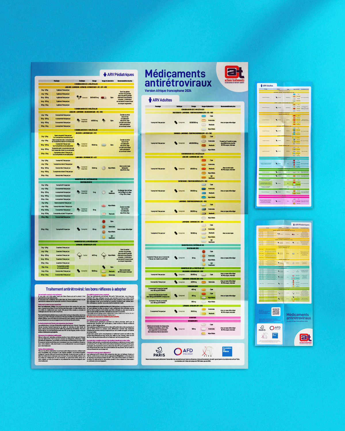Disponible en version affiche A1 pliée facilement postable ainsi qu'en en version poche, ces documents répertorient les traitements antirétroviraux pédiatriques et adultes disponibles dans les pays francophones d'Afrique.