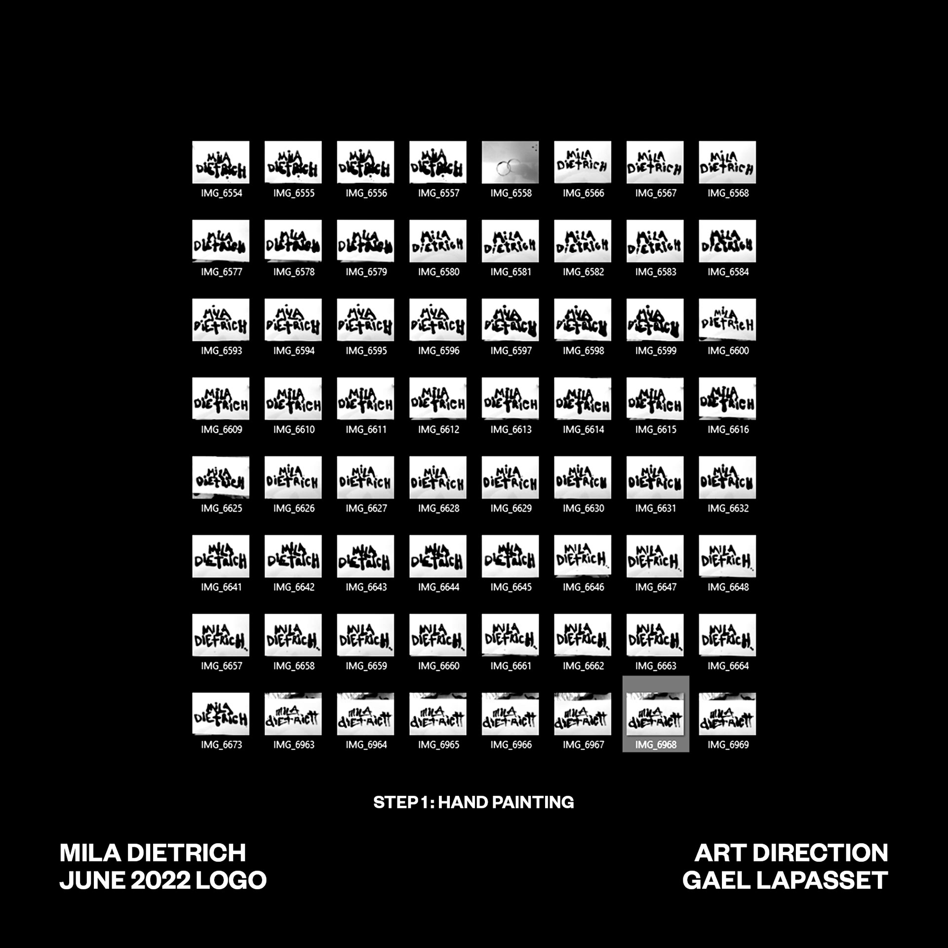 D’abord peint à la main, puis vectorisé et corrigé, pour ensuite y appliquer des effets. Ce logo est le fruit d’un long processus de réflexion et de conception, et j’ai choisi de vous présenter pour l’occasion les différentes étapes de mon travail, que j’ai pour habitude de garder secrètes 👀